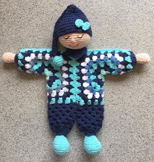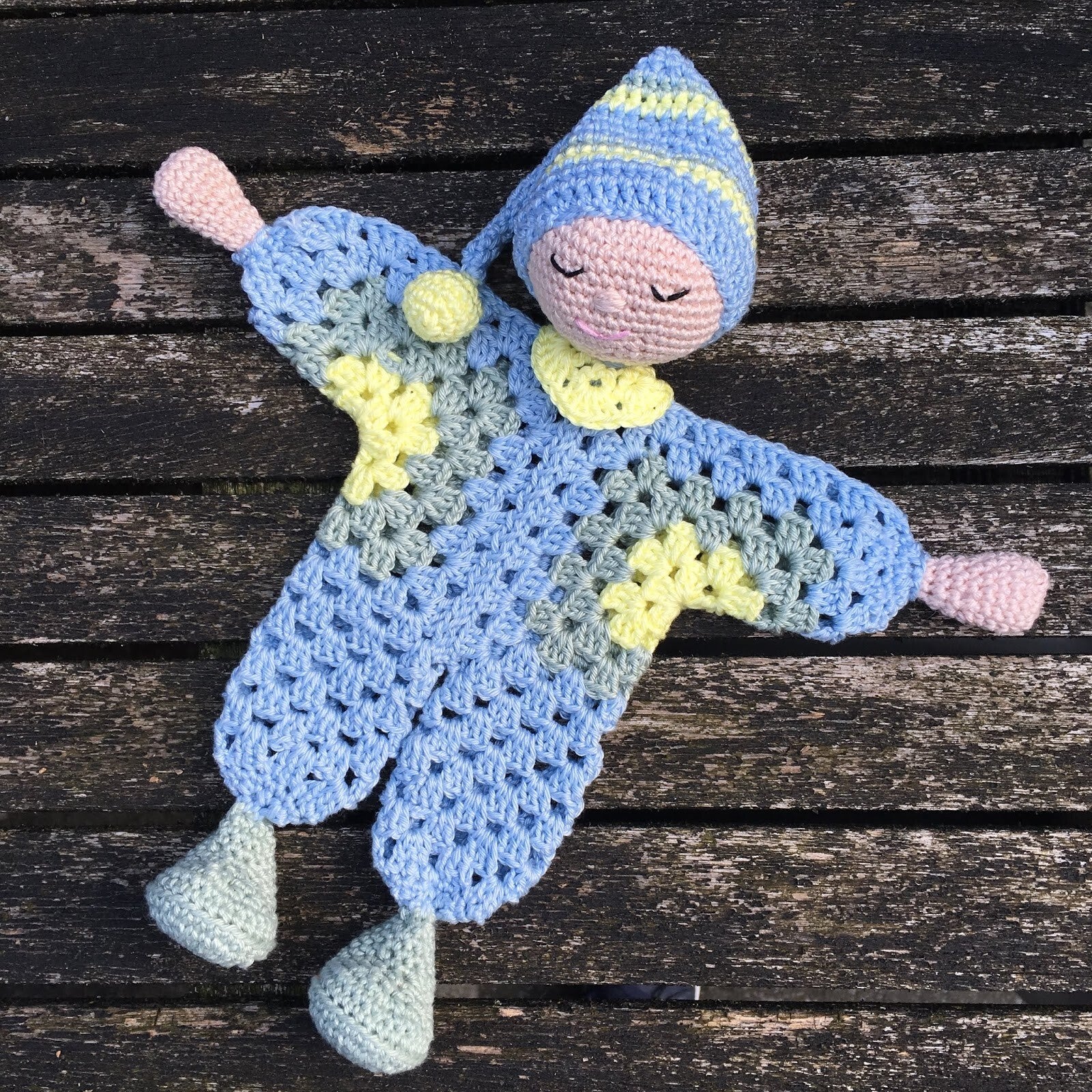 dit schattige knuffeldoekje is Lene. de handjes en voetjes kunnen ook weggelaten worden. ze kan in verschillende kleuren gehaakt worden.